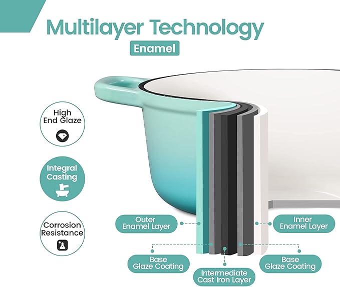 About This Suitable for 6-7 people: The 5.5 quart enamel Dutch oven is the choice for cooking food and desserts.... Read more