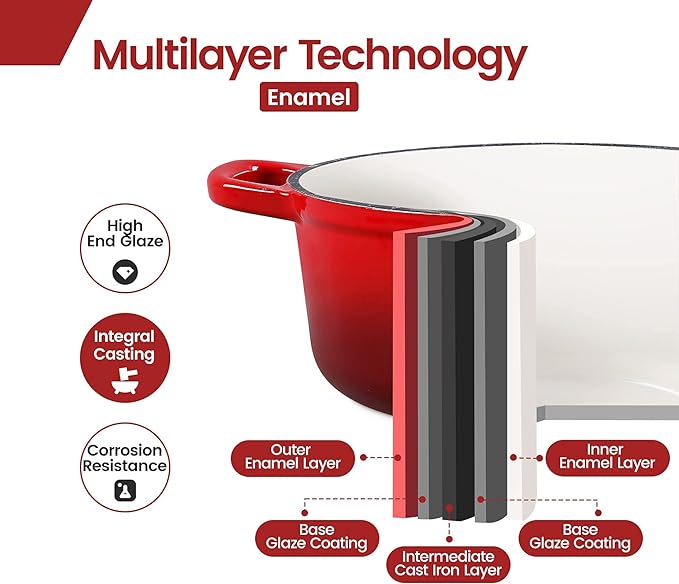 About This Suitable for 6-7 people: The 5.5 quart enamel Dutch oven is the choice for cooking food and desserts.... Read more