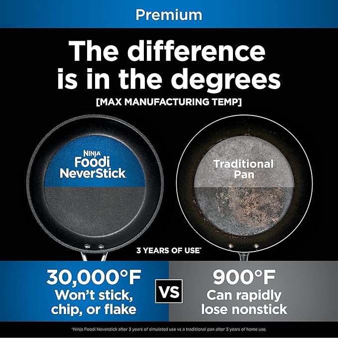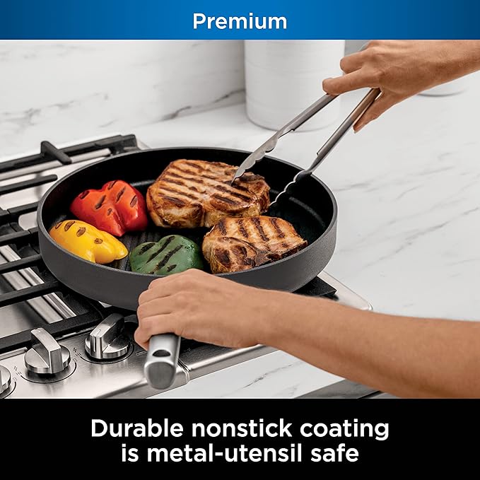 Ninja C30530 Foodi NeverStick Premium 12-Inch Round Grill Pan, Hard-Anodized, Nonstick, Durable & Oven Safe to 500°F, Slate Grey