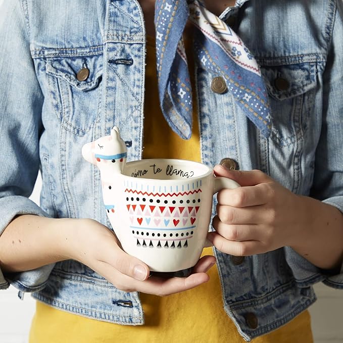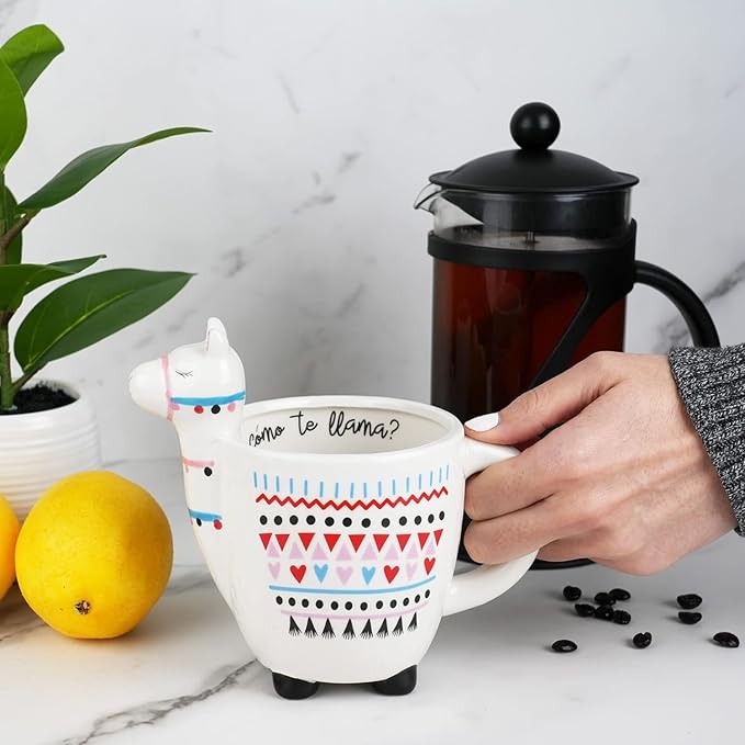 VOTUM Animal-Shaped Llama Coffee Mug, 18.6 fl. oz. - Handmade, Adorable Tea Cup with Printed Como Te Llama Writing - Premium Ceramic Gifts for Women & Men