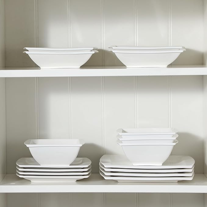 MALACASA Plates and Bowls Sets, Square Dinnerware Sets for 6 (30pcs), Series Blance