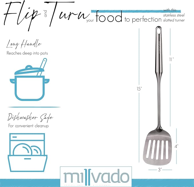 Stainless Steel Cooking Spatula,15 Inch Metal Turner, Kitchen Slotted Flipper For Grills, Camping BBQ’s, Frying Pancakes, Burgers, Large Cookware For the Professional Chef