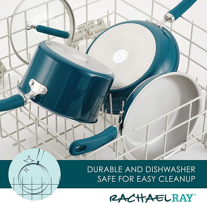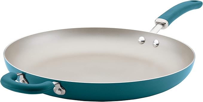 Rachael Ray 12212 Create Delicious Nonstick Frying/Fry Pan/Skillet with Helper Handle, 14.5 Inch - Teal Shimmer