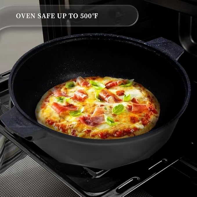 TIBORANG 8 in 1 Multipurpose 11 Inch 5 Quart Heat Indicator Nonstick Deep Frying Pan with Glass Lid, Stay-cool Handle, Steamed Grid, PFOA-Free,Dishwasher&Oven Safe,Works with All Stovetops (Black)