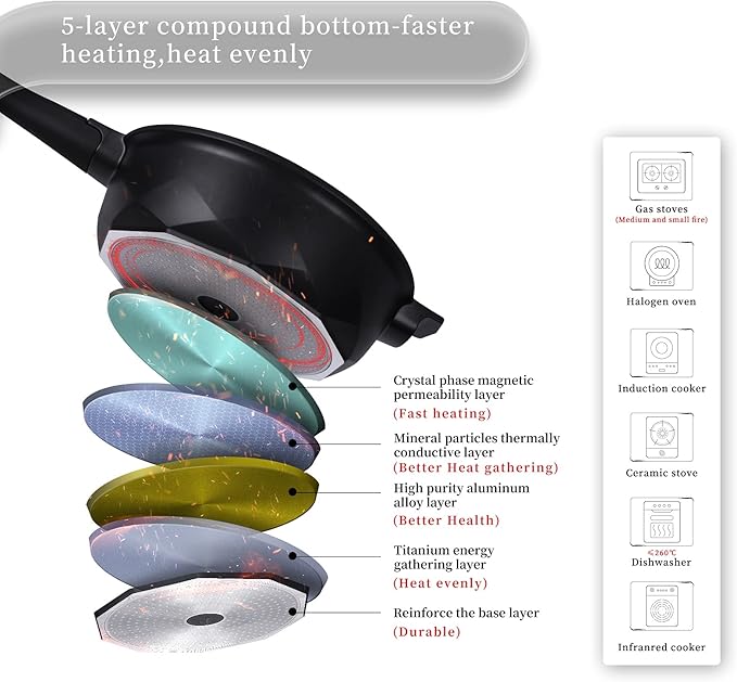 About This Versatile Always Nonstick Saute Pan: The pan is suitable for Deep Fried, Light Pressure cooking,Steam,Stew,Boil,Decoct,bake,Stir and Hotpot. you... Read more