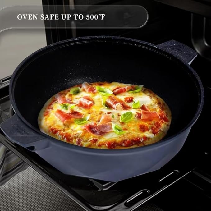 TIBORANG 8 in 1 Multipurpose 11 Inch 5 Quart Heat Indicator Nonstick Deep Frying Pan with Glass Lid, Stay-cool Handle, Steamed Grid, PFOA-Free,Dishwasher&Oven Safe,Works with All Stovetops(Navy Blue)