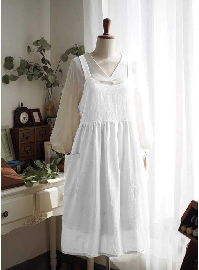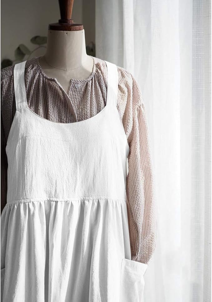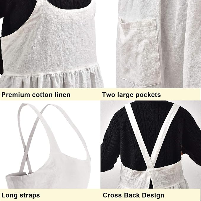 Uaussi Cotton Linen Apron Cross Back Work Apron for Women with Pockets Pinafore Dress X Cross Halter Apron for Chef Gardening