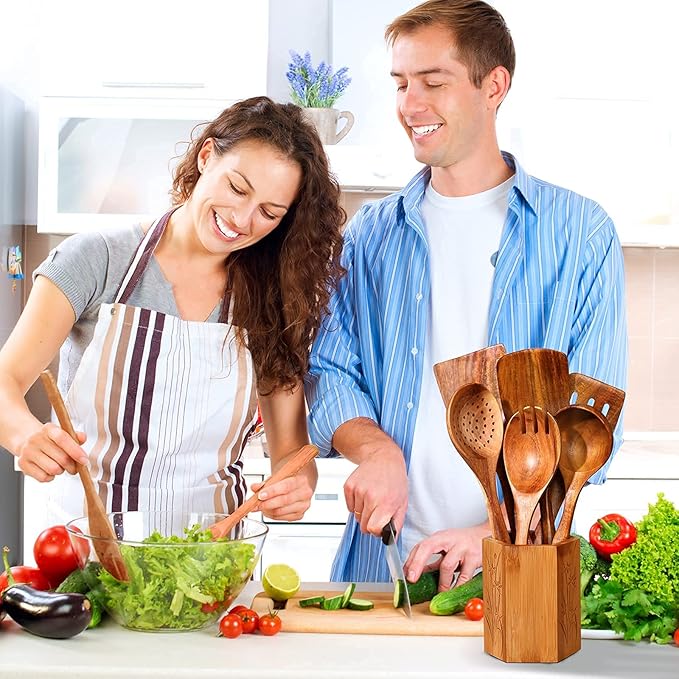 About This 【100% Natural High-Quality Material】 Wooden kitchen utensil set is made of 100% handmade with natural teak.The material is... Read more