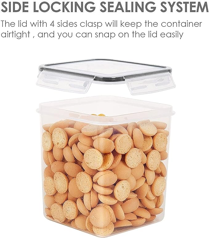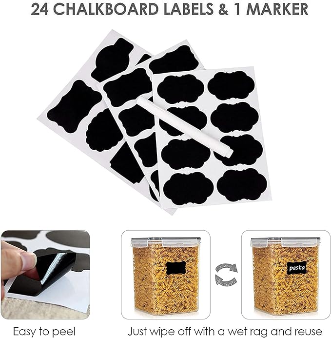Vtopmart Food Storage Containers 2.5L / 84.5oz, 4 Pieces BPA Free Plastic Airtight Canister for Flour, Sugar, Baking Supplies, with 4 Measuring Cups and 24 Labels, Black