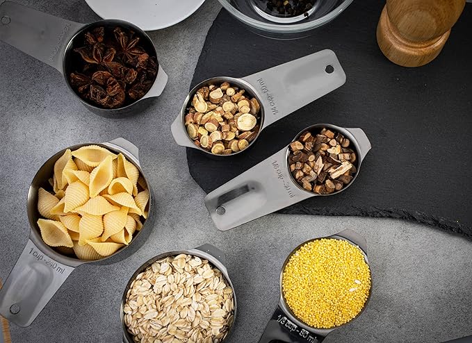 About This 18/8 stainless steel durable contruction. Dark grey finish. Engrave US metric Measurement. Easily pour out the contents inside... Read more