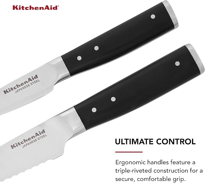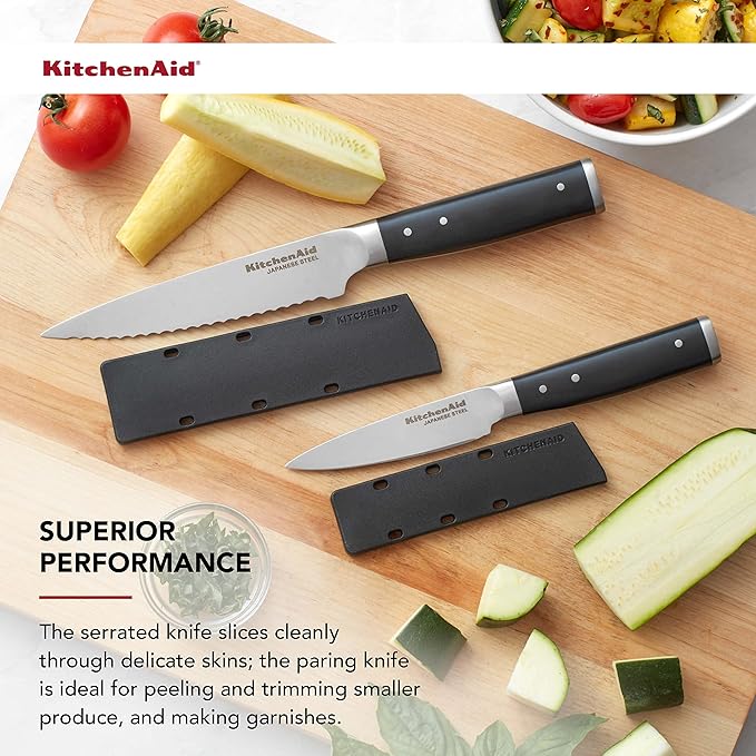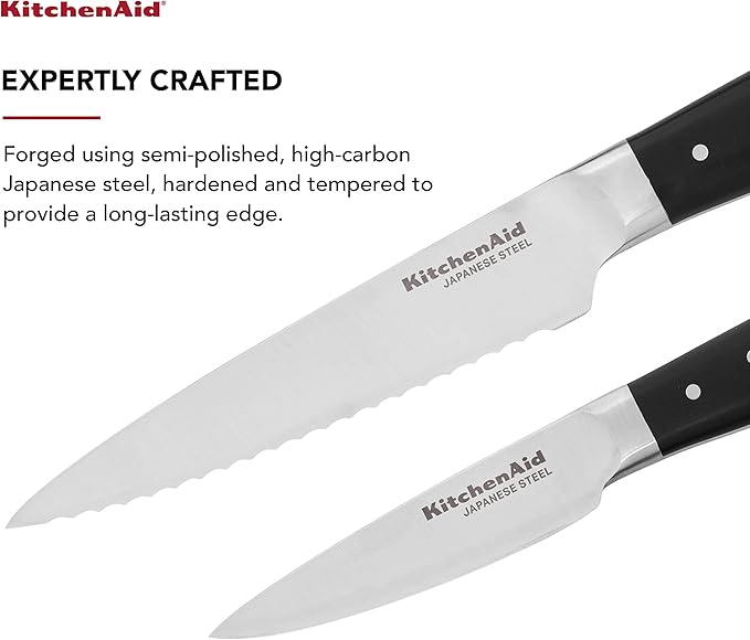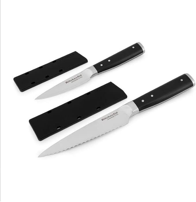 KitchenAid Gourmet 2 Piece Forged Triple Rivet Knife Set, 4.5 inch Fine Edge Utility Knife and 3.5 inch Paring Knife Set, Sharp Kitchen Knives, High Carbon Japanese Stainless Steel, Black
