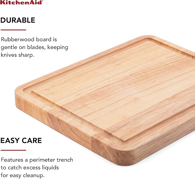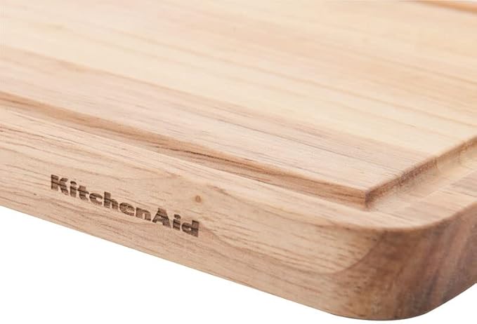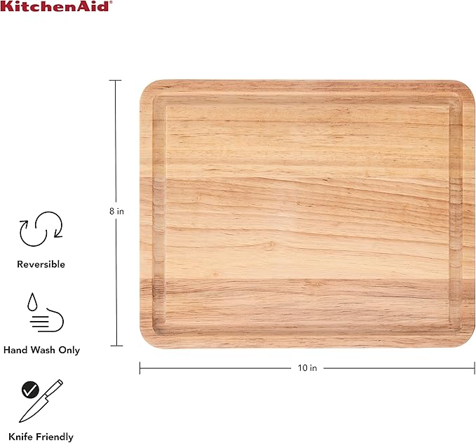 KitchenAid Classic Rubberwood Cutting Board with Perimeter Trench, Reversible Chopping Board, 8-inch x 10-Inch, Natural