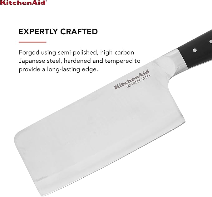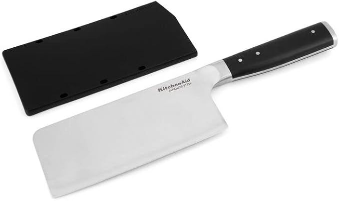 KitchenAid Gourmet Forged Triple Rivet Cleaver Knife with Custom Fit Blade Cover, 6 inch, Sharp Kitchen Knife, High Carbon Japanese Stainless Steel Blade, Meat Cleaver, Black