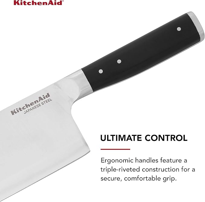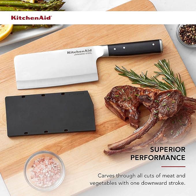 About This CUTLERY ESSENTIAL: The KitchenAid cleaver is designed to easily carve through tough or tender meat and dense vegetables... Read more