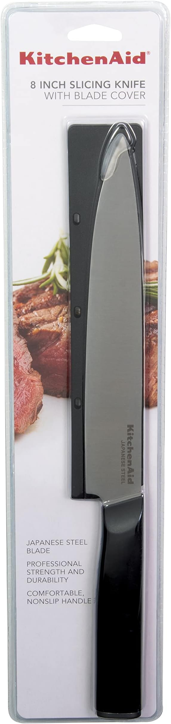 KitchenAid Classic Slicing Knife with Custom Fit Blade Cover, 8 inch, Sharp Kitchen Knife, High Carbon Japanese Stainless Steel Blade, Black