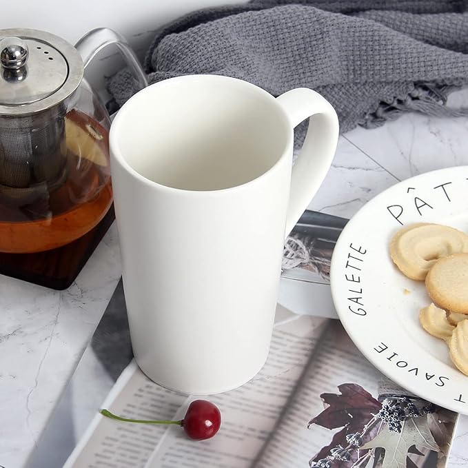 Smilatte 20 oz Extra Large Coffee Mug, M007 Plain Tall Big Ceramic Latte Milk Tea Cup with Handle for Dad Men Women, White