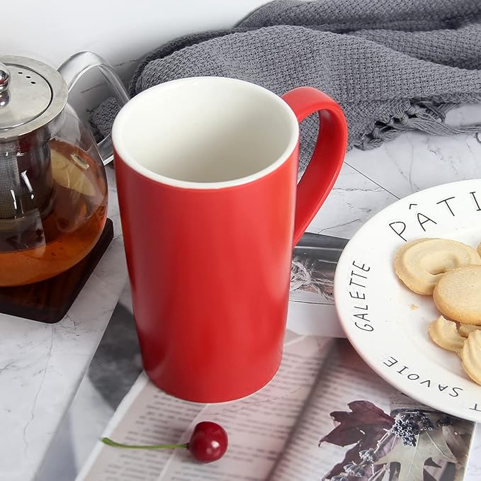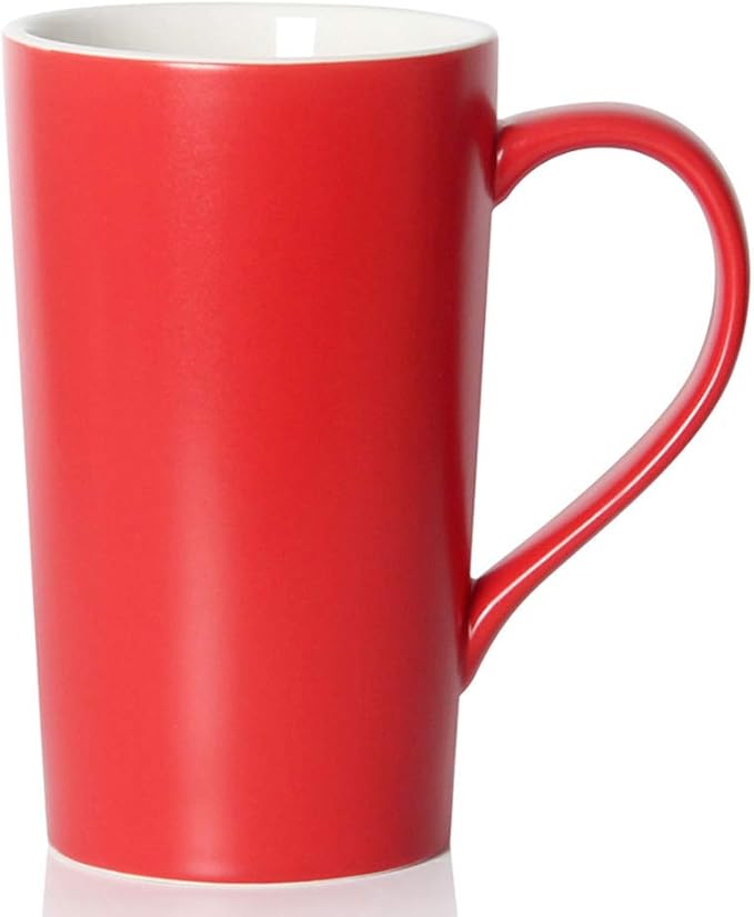 Smilatte 20 Ounces Extra Large Coffee Mug, M007 Plain Tall Big Ceramic Latte Milk Tea Cup with Handle for Dad Men Women, Christmas Red