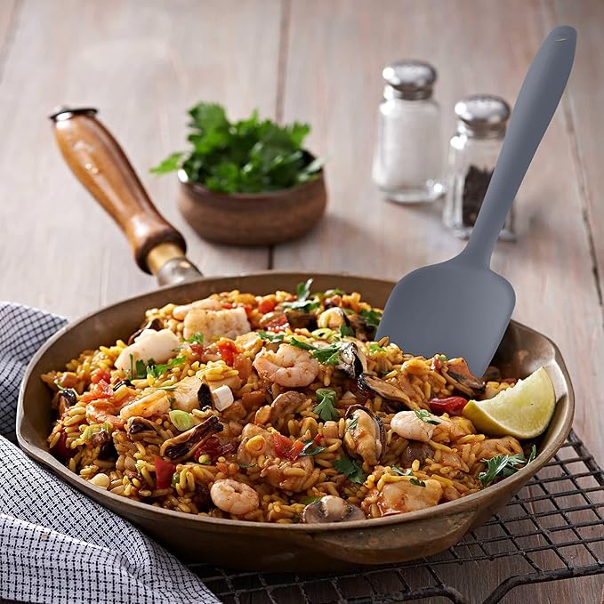 Silicone Spatulas Set Turners Tongs Cooking Utensils Set High Heat Resistant Kitchen Scraper Spatulas for Cooking Mixing Baking BPA Free Dishwasher Safe, Grey
