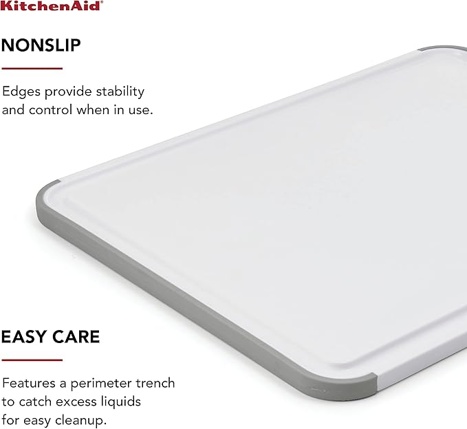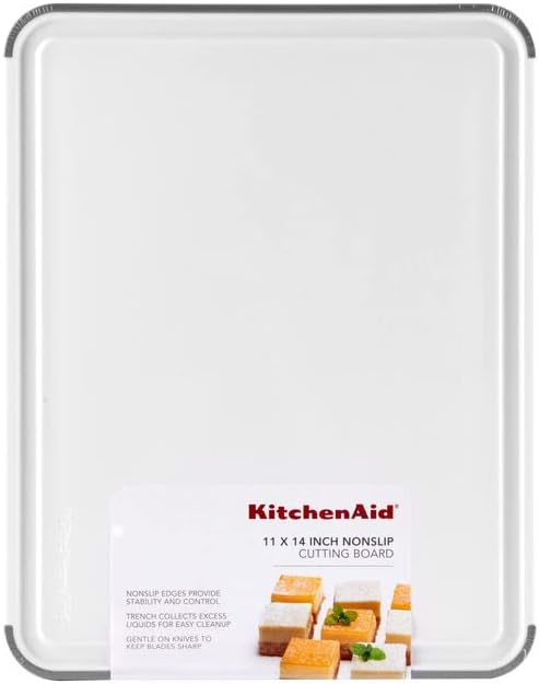 KitchenAid Classic Cutting Board with Perimeter Trench and Non Slip Edges, Dishwasher Safe, 11 inch x 14 inch, White and Gray