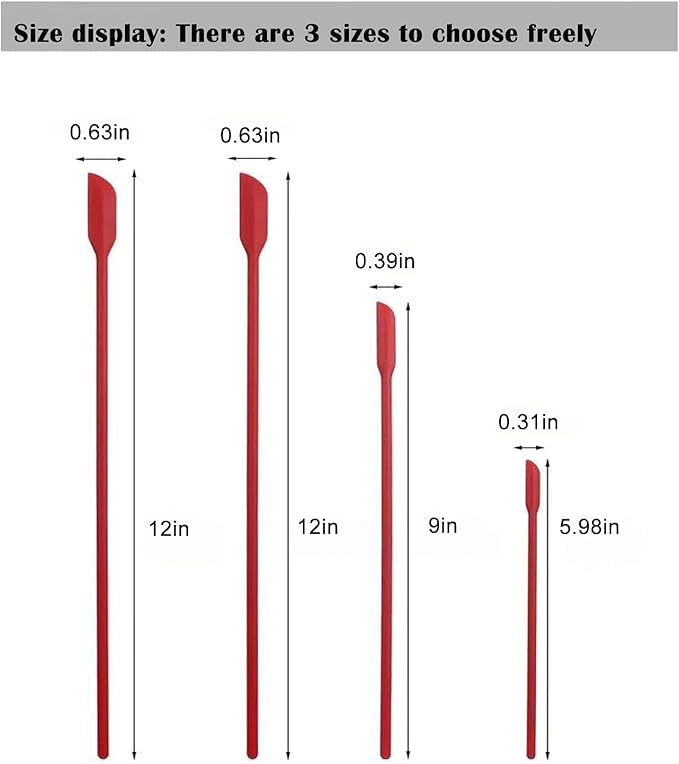 About This 4-PIECE SILICONE SET INCLUDES:1 set including 4 pieces:1*Small Spatula 5.98*0.31" (15.2*0.8cm) , 1*Medium Spatula 9*0.39" (22.9*1cm), and 2*Large... Read more