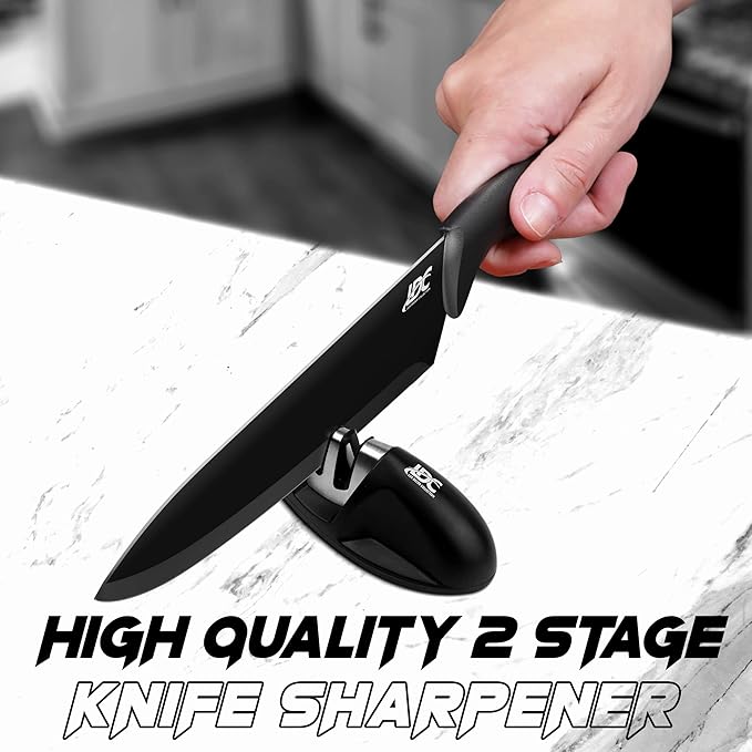 LDC Kitchen Black Knife Set - Stainless Steel, Dishwasher Safe Ergonomic Knives Set with Anti-Slip Handles - Ultra-Sharp Blades - Kitchen Essential Knives - 15 Piece Set