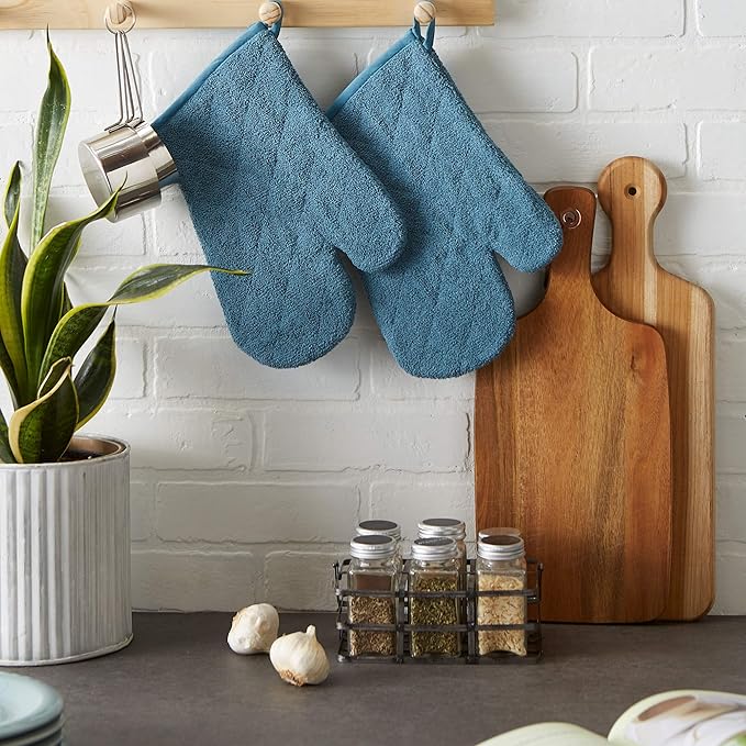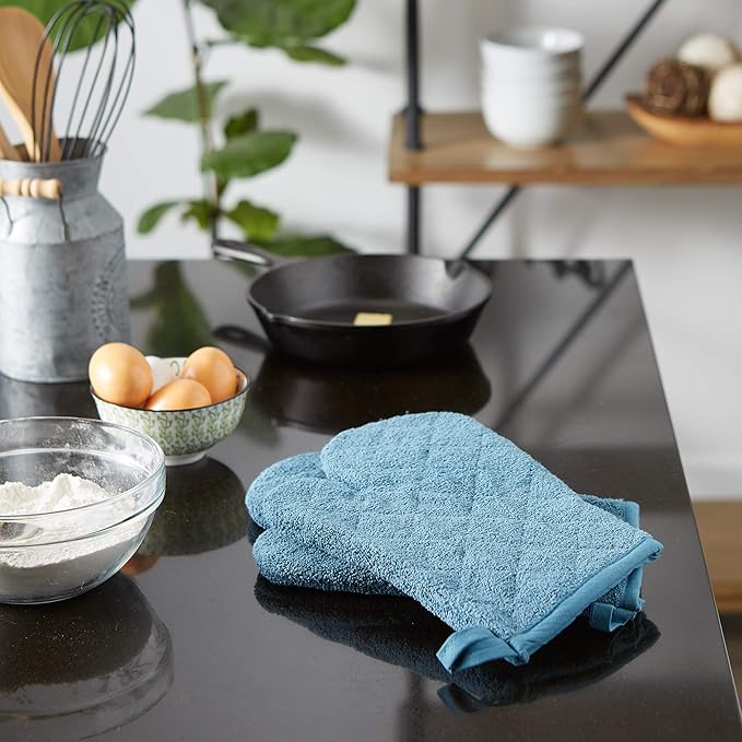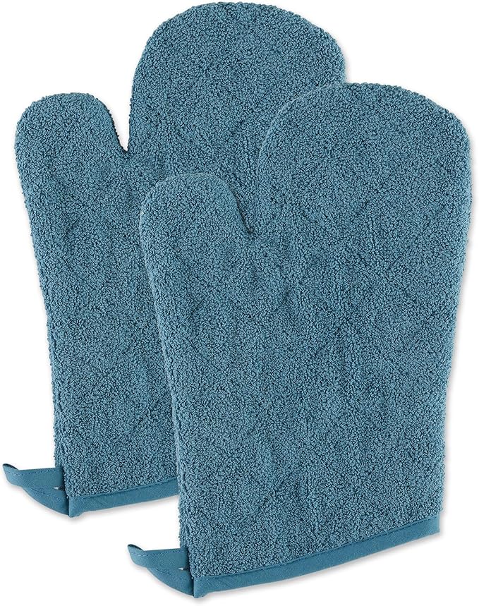DII Basic Terry Collection 100% Cotton Quilted, Oven Mitt, Storm Blue, 2 Piece