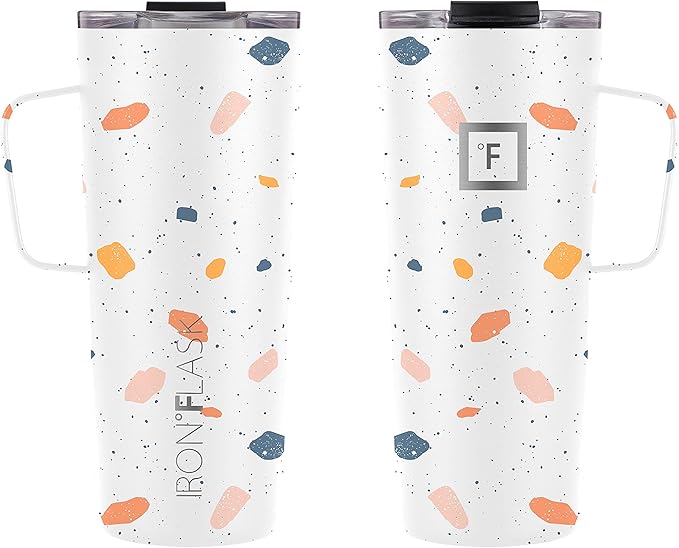 IRON °FLASK Grip Novelty Coffee Mug - Leak Proof, Vacuum Insulated Stainless Steel Bottle, Double Walled, Thermo Travel, Hot Cold, Water Metal Canteen - Terrazzo, 24 Oz - Classic Bottom