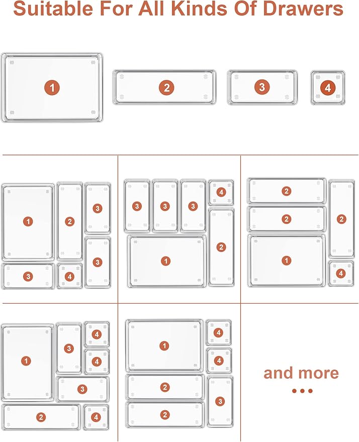 About This Multiple Sizes - 4 different sizes and 29 pieces trays offer you customize combinations to store stuff and... Read more