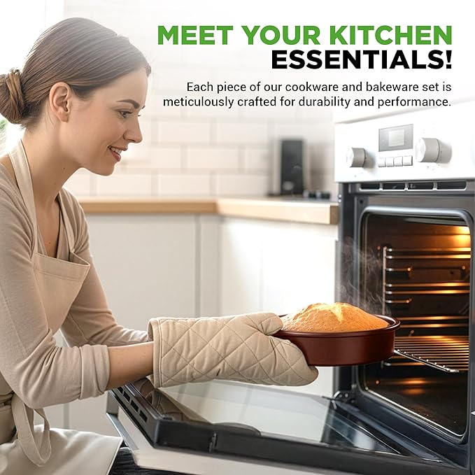 NutriChef 20 Piece Professional Home Kitchen Cookware and Bakeware, Pots and Pans Set Non Stick Kitchenware, Cool-Touch Handles, Safe for Gas, Electric, Induction Cooktops, Easy Clean, Brown