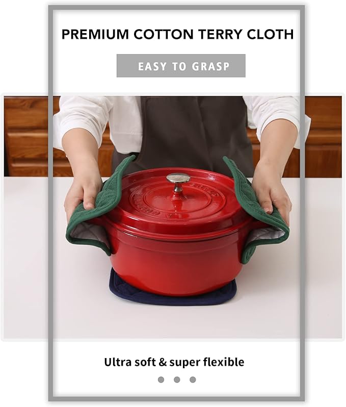 Joyhalo 6 Pack Pot Holders for Kitchen,Cotton Oven Holder with Great Heat Resistance,Non Slip Hot Pads for Kitchen Clearance,Dark Green