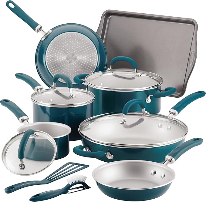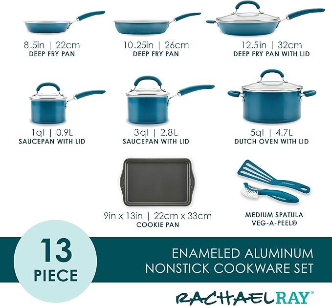 Rachael Ray Create Delicious Nonstick Cookware Induction Pots and Pans Set, 13 Piece - Teal Shimmer