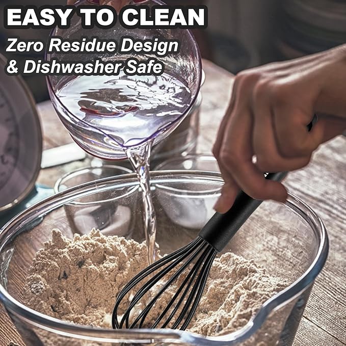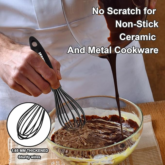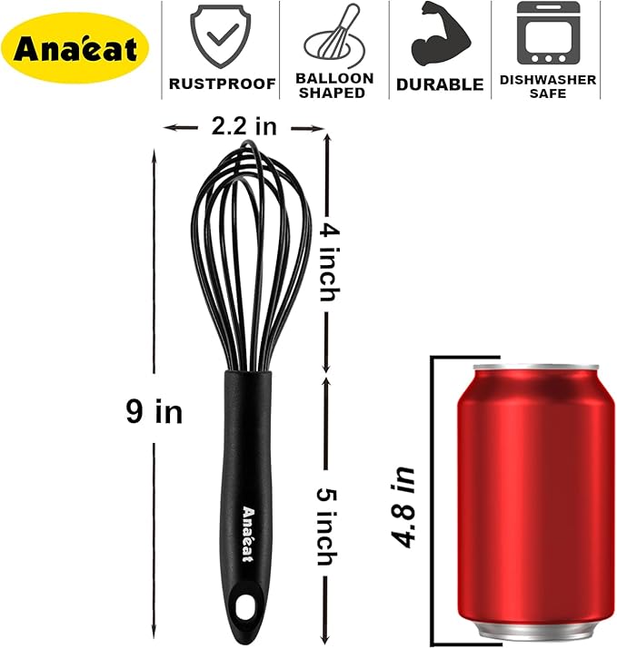 Anaeat 9" Silicone Balloon Whisk, Perfect for Non-Stick Cookware, Milk and Egg Beater Blender, Heat Resistant Kitchen Whisks for Whisking, Cooking, Baking, Beating, Frothing & Stirring (Black)