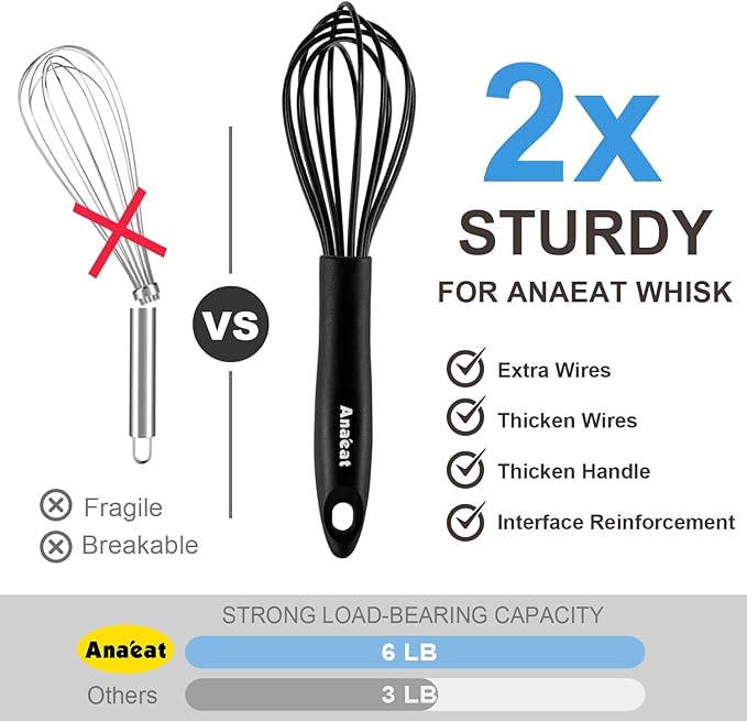 About This 【FATIGUE-FREE MIXING】THICKENED WIRE & comfy nonslip grip made Anaeat WHISK can be fatigue-free MIXING. Proper balance between floppy... Read more