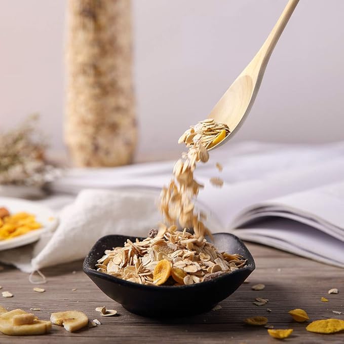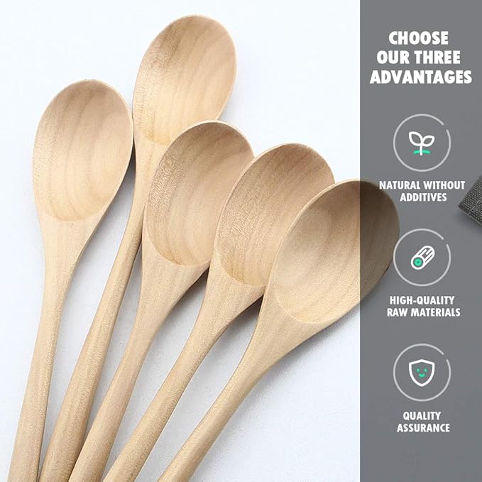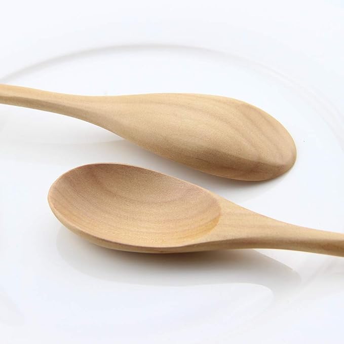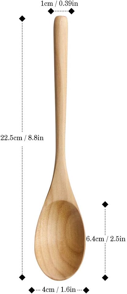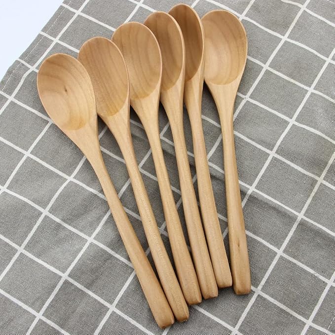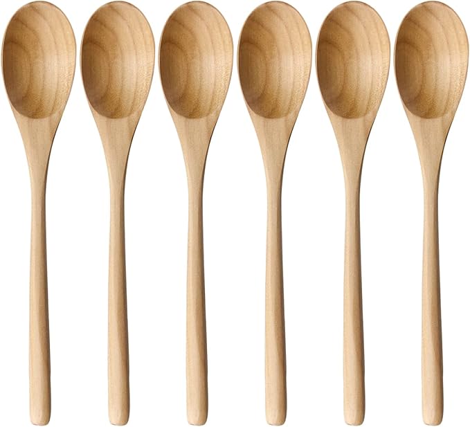 AOOSY Wooden Spoons for Cooking, 9 Inches 6 Pieces Japanese Natural Ellipse Wooden Spoon Set for Cooking Mixing Stirring Honey Tea Soda Dessert Coconut Bowl Nonstick Pots Kitchen