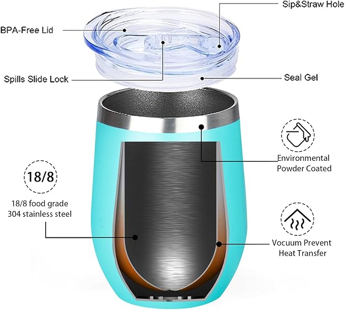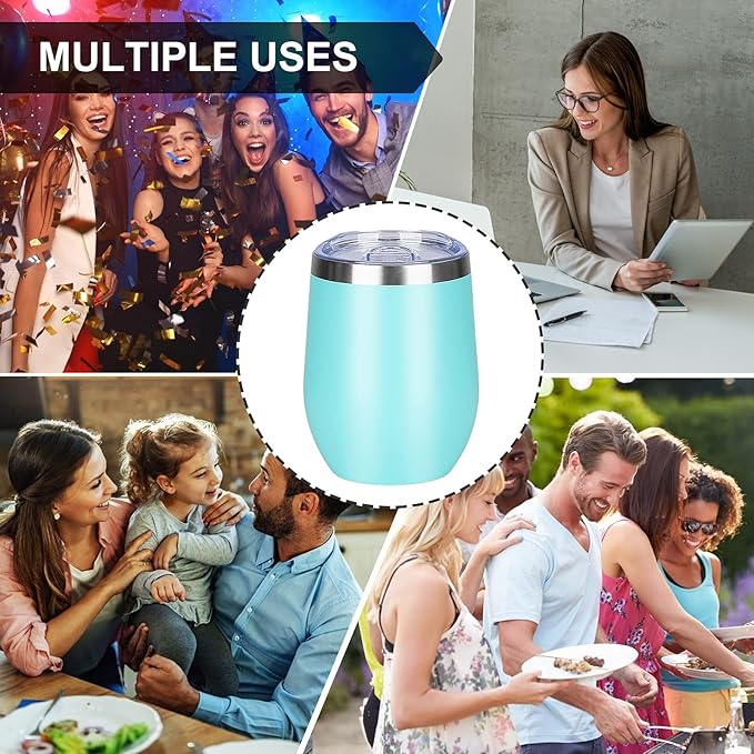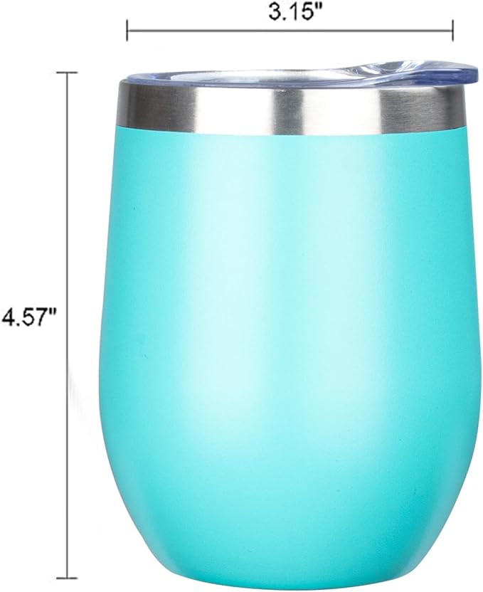 MEZMUT 12 Oz Insulated Wine Tumbler with Lid Double Wall Vacuum Stainless Steel Wine Glass Coffee Mug Insulated Tumbler Cup for Champaign, Cocktail, Beer (Teal, 4 Pack)