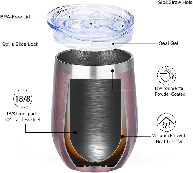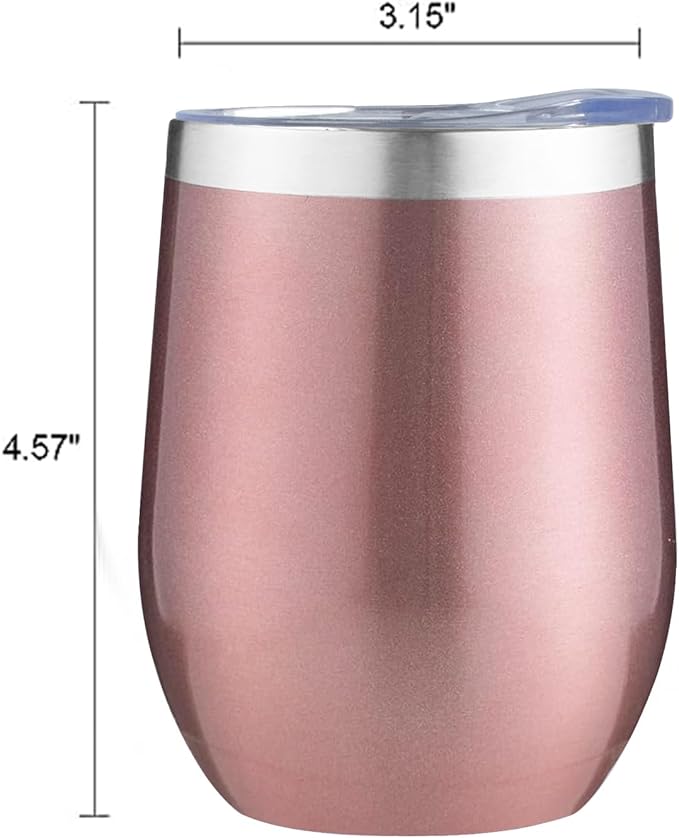 MEZMUT 12 Oz Insulated Wine Tumbler with Lid Double Wall Vacuum Stainless Steel Wine Glass Coffee Mug Insulated Tumbler Cup for Champaign, Cocktail, Beer (Rose Gold, 1 Pack)