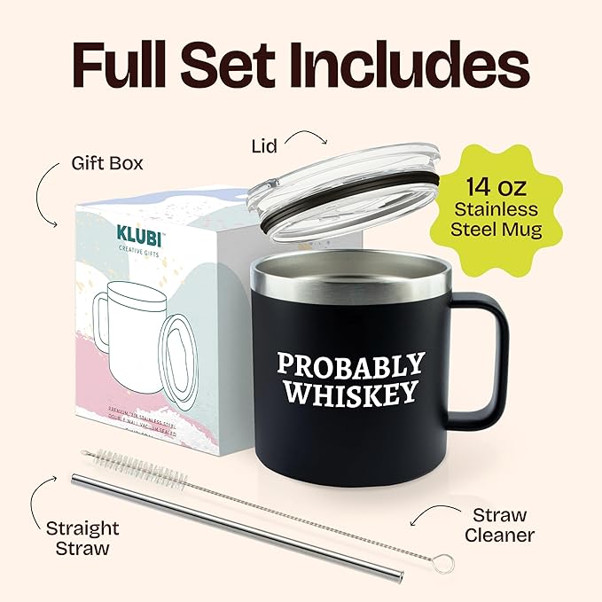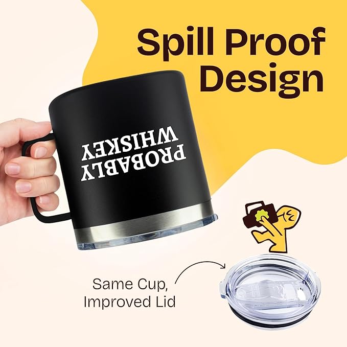 Dad Gifts for Fathers Day - Whiskey Gifts for Men Probably Whiskey Coffee Mug for Dad Tumbler Black 14oz Gift for Whisky Lovers Funny Birthday Present for Coffee Drinkers Gift Ideas for Father's Day