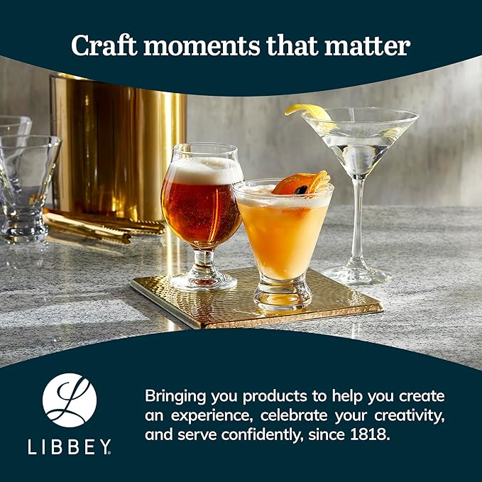 Libbey Entertaining Essentials Belgian Beer Glasses, 13 oz, Craft Beer Glasses Set of 6 for Belgian Ales, Unique Tulip Beer Glasses for Entertaining