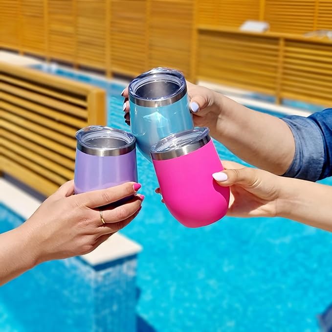 CHILLOUT LIFE 12 oz Stainless Steel Wine Tumbler with Lid - Double Wall Vacuum Insulated Wine Cup Glass Keeping Cold & Hot for Coffee, Champagne, Cocktails, Ice Cream - Purple Sparkle
