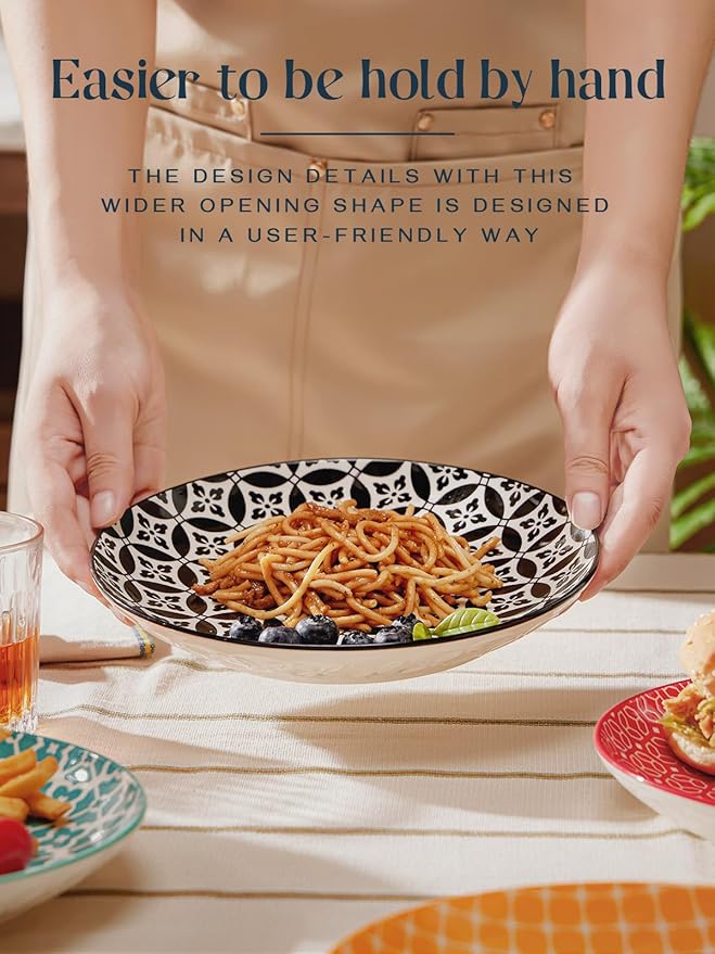 DOWAN 8.5" Salad Plates Set of 6, Ceramic Dessert Plate for Appetizer, Sushi, Microwave, Oven & Dishwasher Safe, Colorful Design Perfect for Party, Wedding, Birthday, Mothers Day Gifts