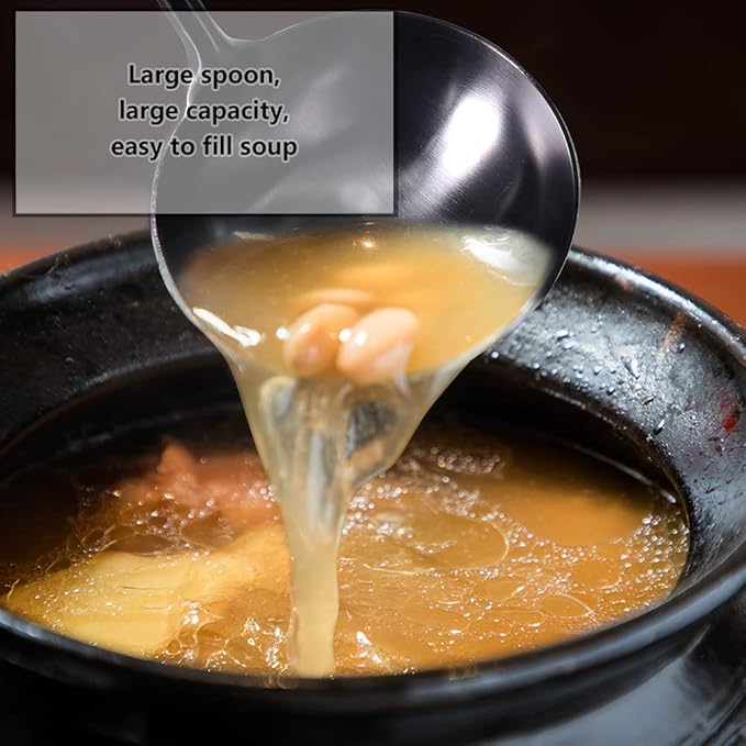 Newness Soup Ladle, [Rustproof, Heat Resistance, Integral Forming] Durable 304 Stainless Steel Soup Spoon with Vacuum Ergonomic Round Handle, Cooking Spoon for Kitchen, 13.7 Inches, Black