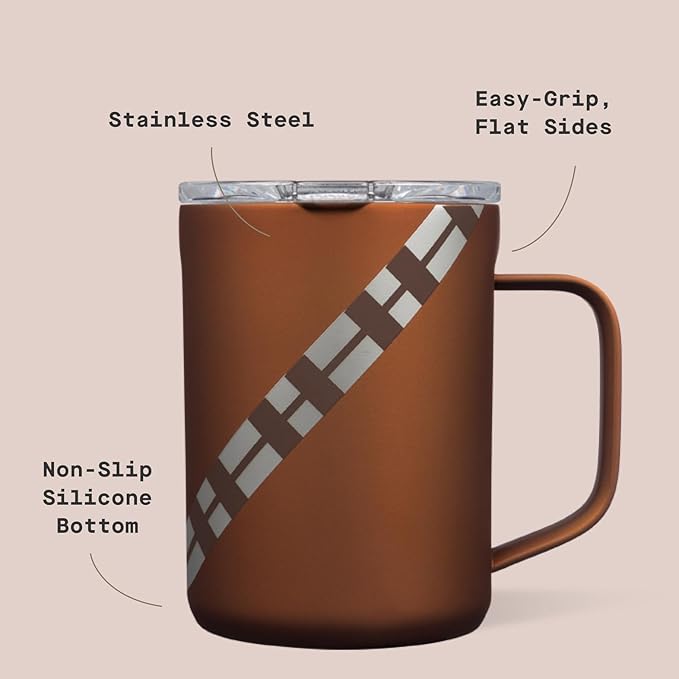 Corkcicle Classic Coffee Mug - Triple Insulated Stainless Steel for Travel - Shatter-Proof Lid - Keeps Drink Hot Over 3 Hours - Holiday Mug Gift - Great for Gifting Warmth - 16 oz - Chewbacca