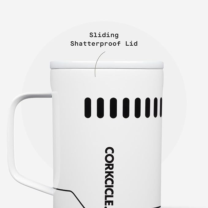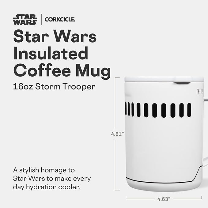 Corkcicle Classic Coffee Mug - Triple Insulated Stainless Steel for Travel - Shatter-Proof Lid - Keeps Drink Hot Over 3 Hours - Holiday Mug Gift - Great for Gifting Warmth - 16 oz - Stormtrooper