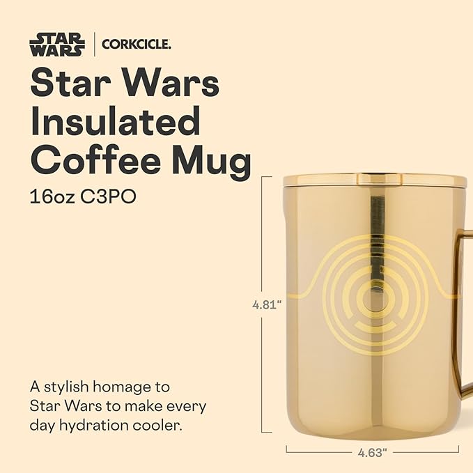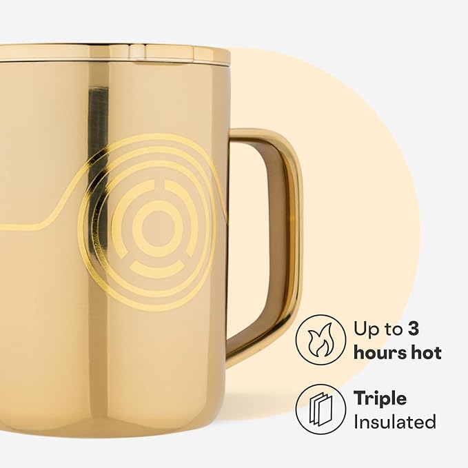 Corkcicle Classic Coffee Mug - Triple Insulated Stainless Steel for Travel - Shatter-Proof Lid - Keeps Drink Hot Over 3 Hours - Holiday Mug Gift - Great for Gifting Warmth - 16 oz - C-3PO