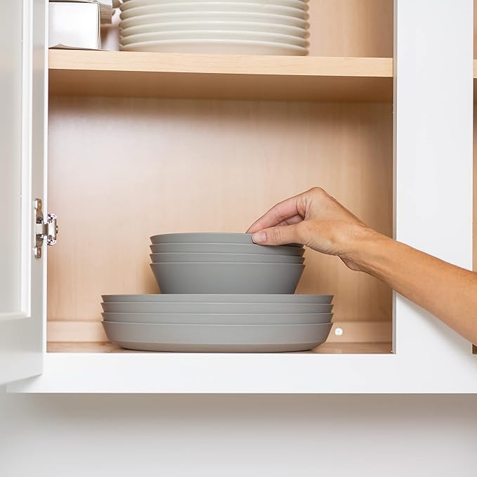 Grow Forward Premium Wheat Straw Plates and Bowls Sets - 8-Piece Wheat Straw Dinnerware Sets - Unbreakable & Reusable Microwave Safe Plastic Dinner Plates for Outdoors, RV, Camping Dishes - Feather