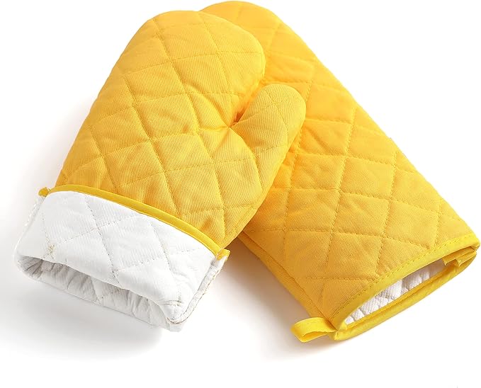 Oven Mitts and Pot Holders 4 pcs Set,High Heat Resistant 500 Degree Extra Thicken Long Kitchen Cotton Oven Glove for Cooking (12 Inch,Yellow)