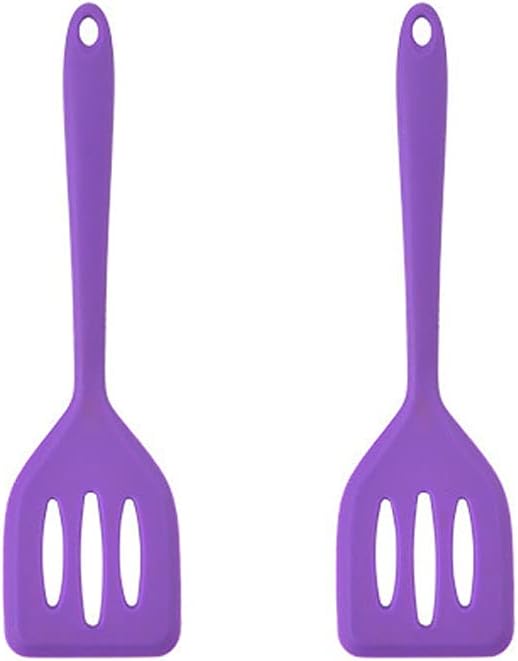 2Pack Small Silicone Turner High Heat Resistant Slotted Spatula for Fish, Eggs, Pancakes and More (8.2 IN, Purple)