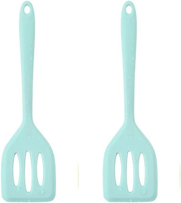 2Pack Small Silicone Turner High Heat Resistant Slotted Spatula for Fish, Eggs, Pancakes and More (8.2 IN, Light blue)