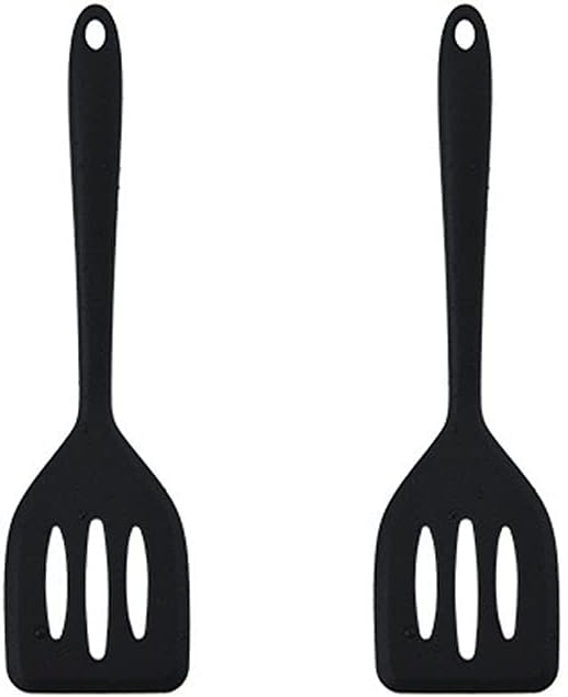 2Pack Small Silicone Turner High Heat Resistant Slotted Spatula for Fish, Eggs, Pancakes and More (8.2 IN, Black)