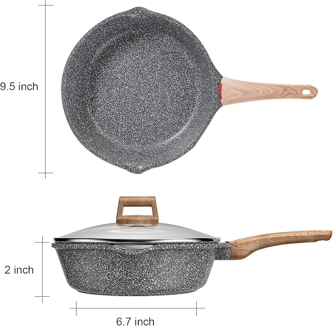 Induction Nonstick Skillet Frying Pan,Swiss medical stone Omelette Pan, Scratch-Resistant Safe Cookware Set,PFOA Free (9.5 inch)